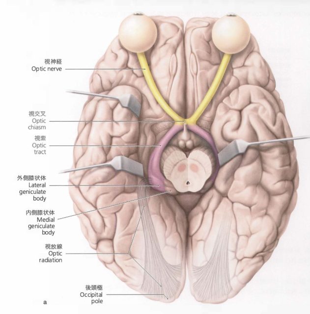 眼球〜視神経、視交叉、後頭葉という具合に、視覚情報が
